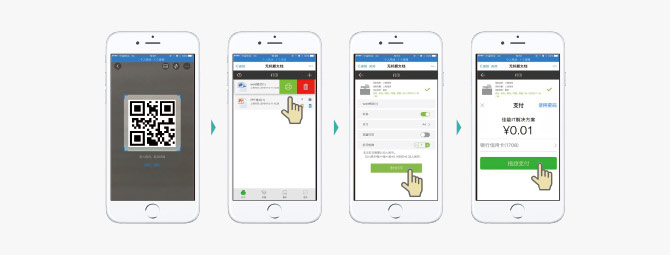 手機(jī)掃碼打印復(fù)印系統(tǒng)為用戶提供自助手機(jī)支付打印服務(wù)。實(shí)現(xiàn)僅需一部手機(jī),輕松三步就能全程實(shí)現(xiàn)自助打印、復(fù)印或掃描作業(yè)。