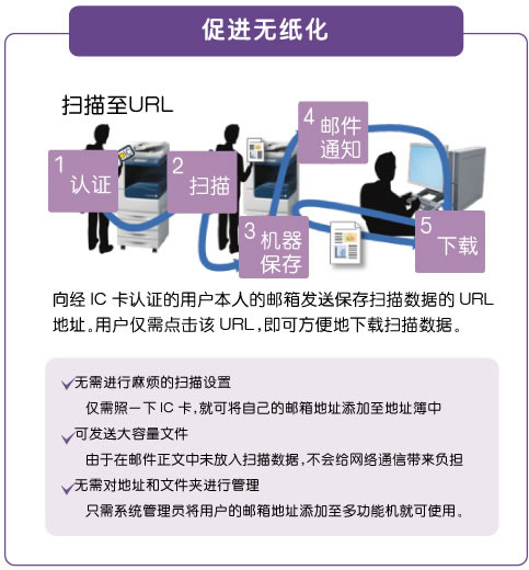用戶不再需要使用身份密碼訪問多功能設(shè)備或打印機(jī)。當(dāng)IC卡讀卡器掃描到停留在它正面的卡時,就能完 成認(rèn)證。有兩種認(rèn)證模式——'Touch & Use (刷后即用)'和'Set & Use(卡在才可用)',它們可以防止用戶遺留文件,并防止未經(jīng)授權(quán)者使用。